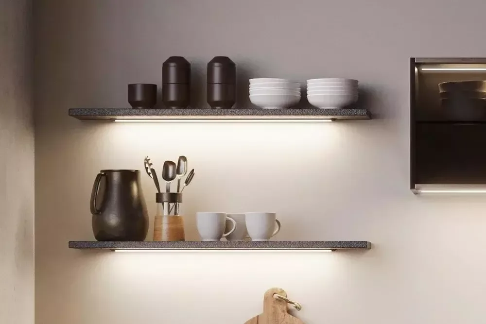 Conçue pour s’intégrer dans des volumes limités, la cuisine Brown Steel adopte une configuration linéaire enrichie d’éléments hauts et bas sur-mesure. Chaque meuble de cuisine est pensé pour accueillir ustensiles, appareils et vaisselle sans encombrer l’espace. Les vitrines verticales et les étagères murales permettent une organisation claire, tandis que l’éclairage LED intégré souligne les zones utiles et crée une ambiance chaleureuse. Le plan de travail, à la profondeur bien étudiée, offre une surface fonctionnelle sans surcharger l’ensemble. Résultat : un agencement personnalisé qui combine sobriété, efficacité et équilibre visuel pour une cuisine au style industriel affirmé.