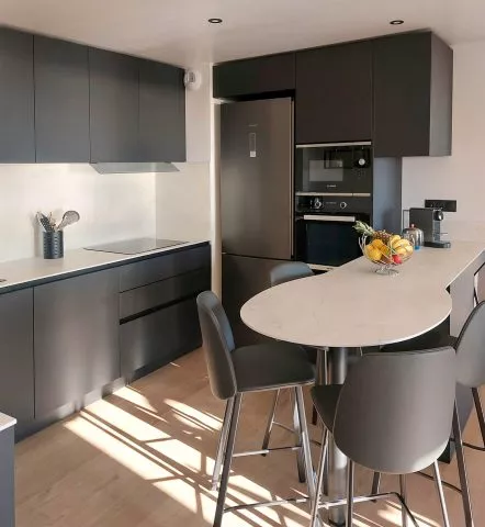 Cette cuisine sur mesure au Havre répond pleinement aux attentes initiales : sobriété, structure, fonctionnalité, convivialité.