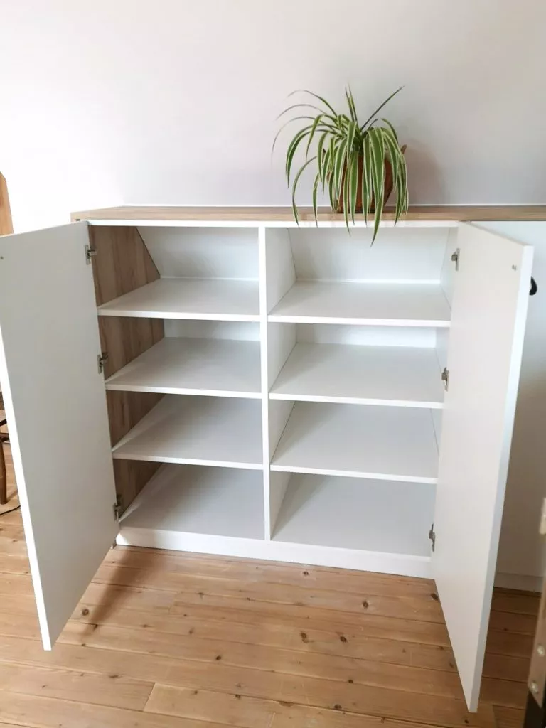 Entre bois clair, blanc mat et structure métallique noire, chaque élément de cette composition sur mesure trouve sa place avec justesse.